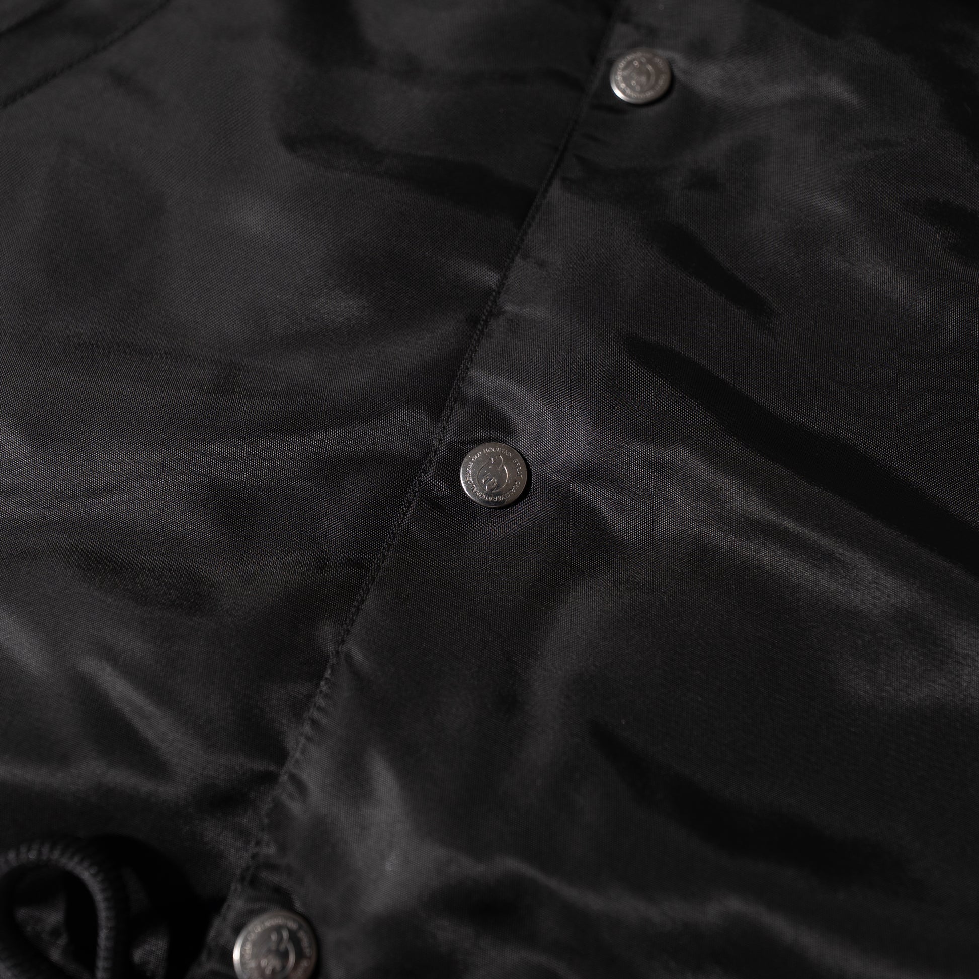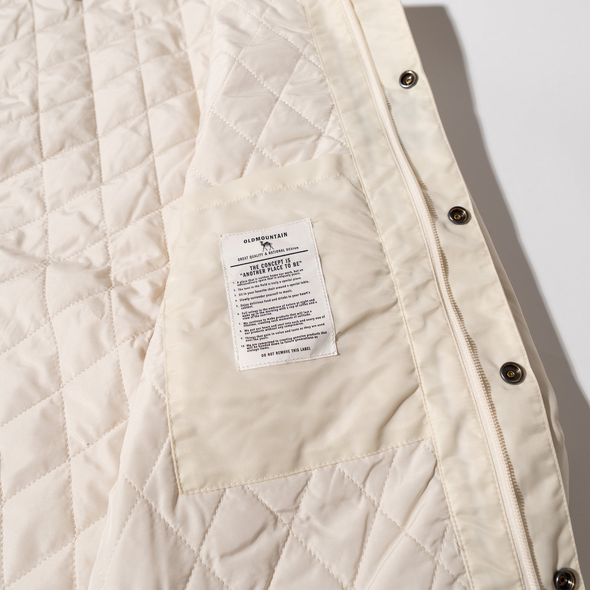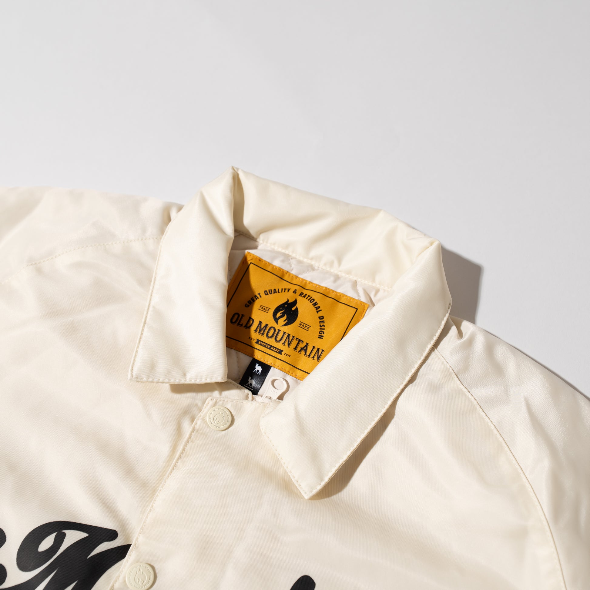 生地の素材、シルエットにこだわり、装飾はあえてシンプルに施した高級感あるオリジナルコーチジャケットヘビータイプ。オールドマウンテンオリジナルのスナップボタンとファスナーの両方を採用し、ボタンだけでなくファスナーを使用することで、ベンチレーションとしての機能も果たすタウンユース仕様。 中綿入りのキルティング仕上げを施した防寒対策と袖口にはインナーリブを採用することで外からの風の侵入を抑えられる。 ポケットには脱落防止のポケットファスナー付き。 フロントにはOLDMOUNTAINロゴを施したシンプルながら存在感のある一着。