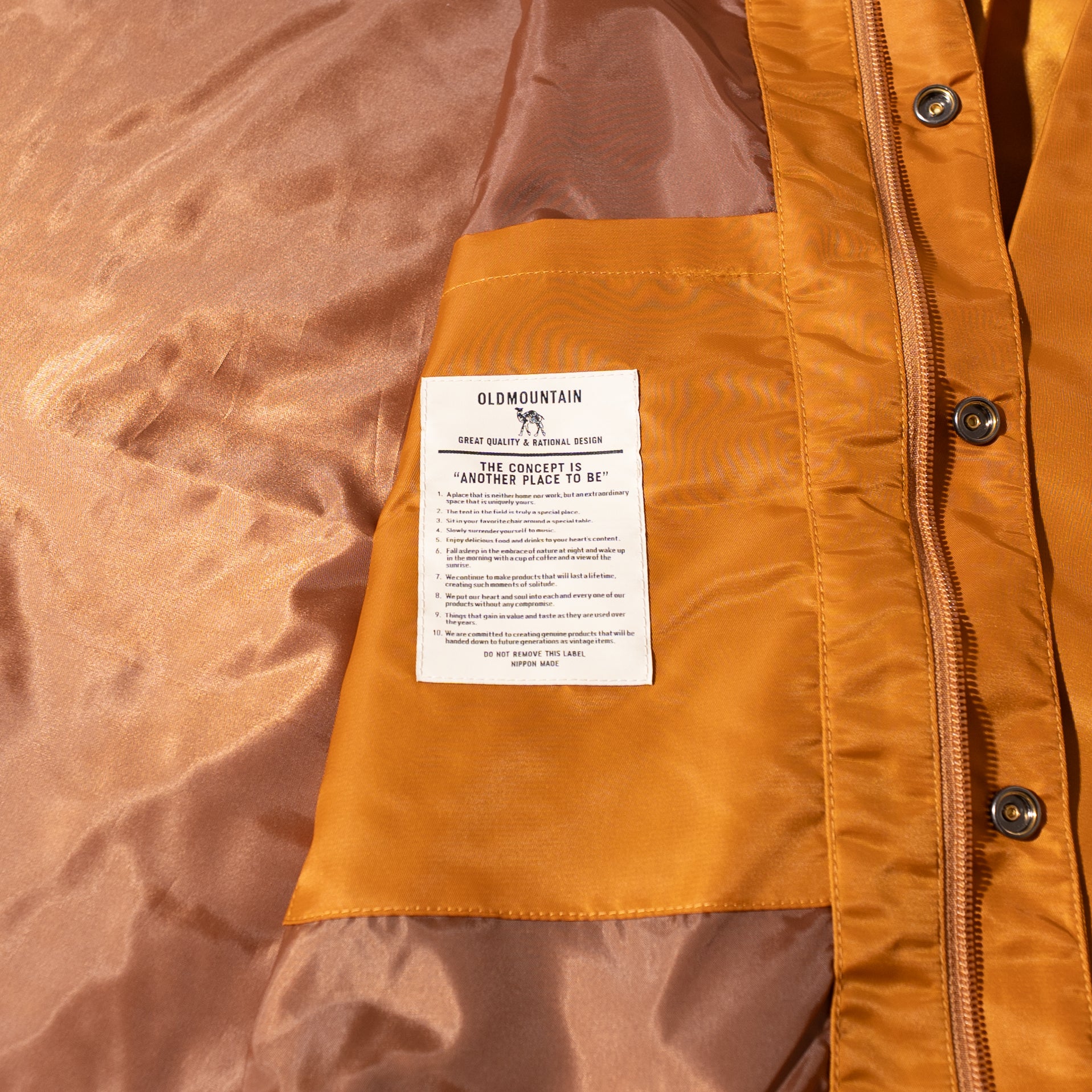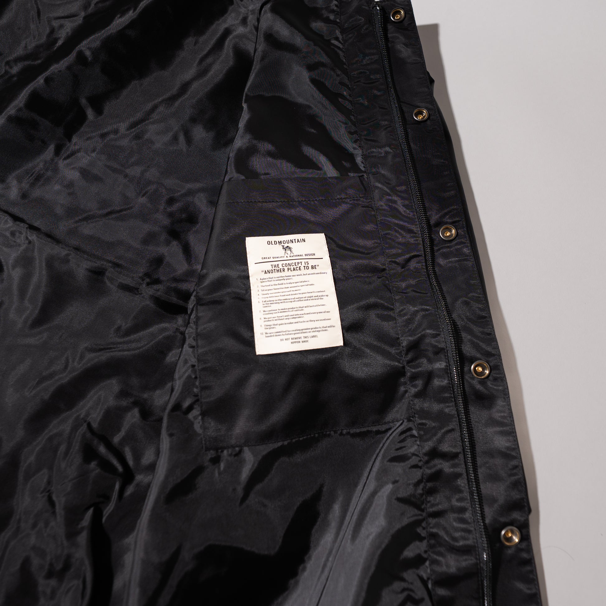 生地の素材、シルエットにこだわり、装飾はあえてシンプルに施した 高級感あるオリジナルコーチジャケットライトタイプ。 オールドマウンテンオリジナルのスナップボタンとファスナーの両方を採用し ボタンだけでなくファスナーを使用することで ベンチレーションとしての機能も果たすタウンユース仕様。 heavyモデルと比較して、キルティングとインナーリブを除いた軽量モデルとして 着回ししやすい仕様に。 ポケットには脱落防止のポケットファスナー付き。 フロントにはOLDMOUNTAINのロゴをプリントした数量限定バージョン