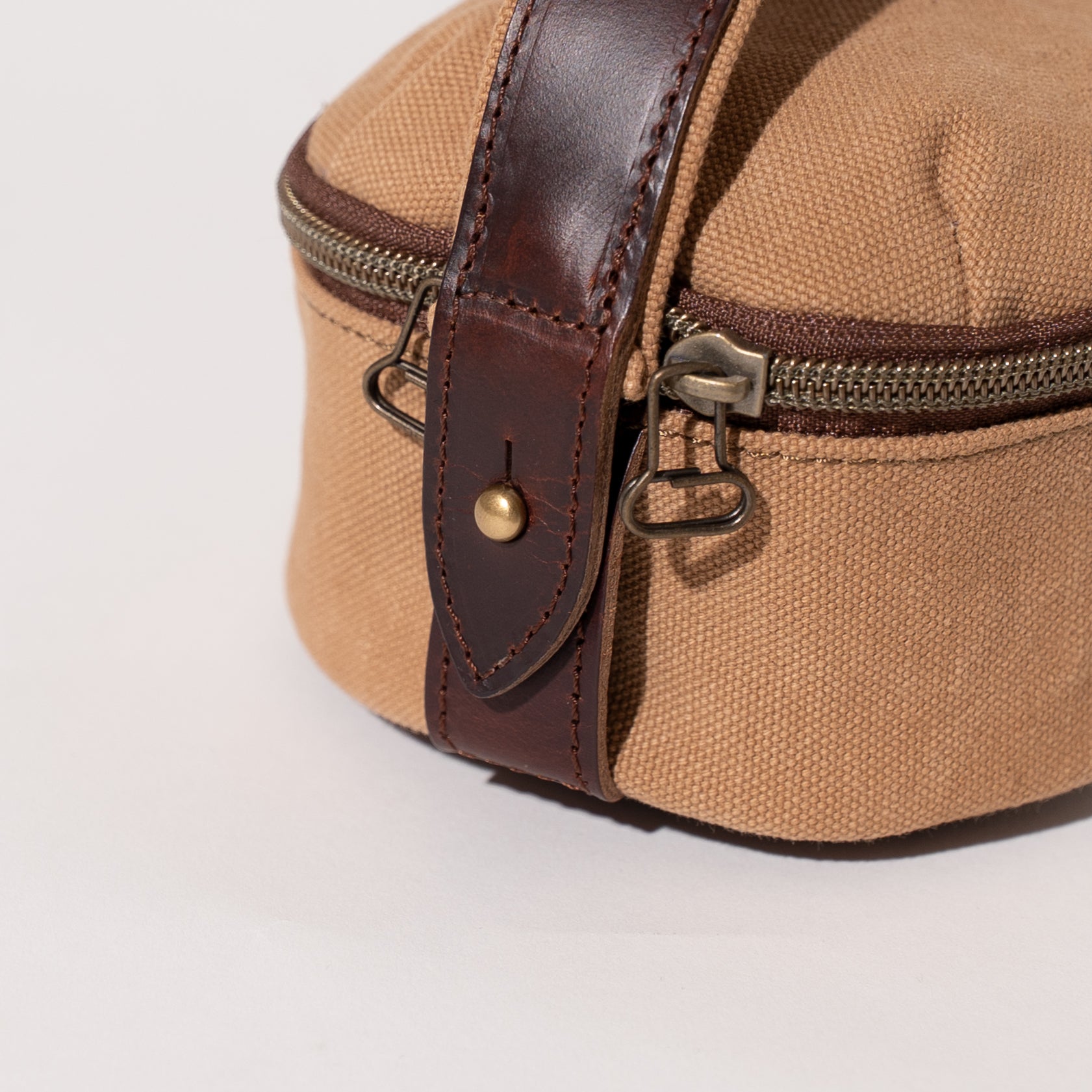 メイン素材のキャンバスは6号帆布を、チェストナット(栗)とミモザから抽出した天然の染料『ベジタブルタンニン』で染め、使い込むほどに色褪せるのではなく、濃く経年変化していくのが特徴。