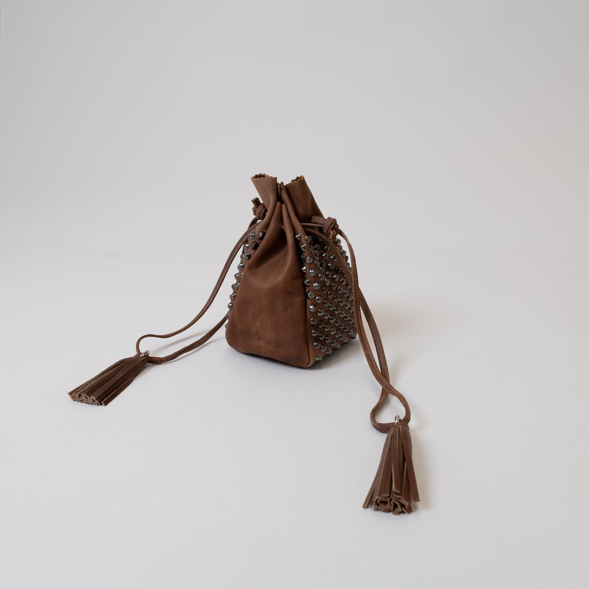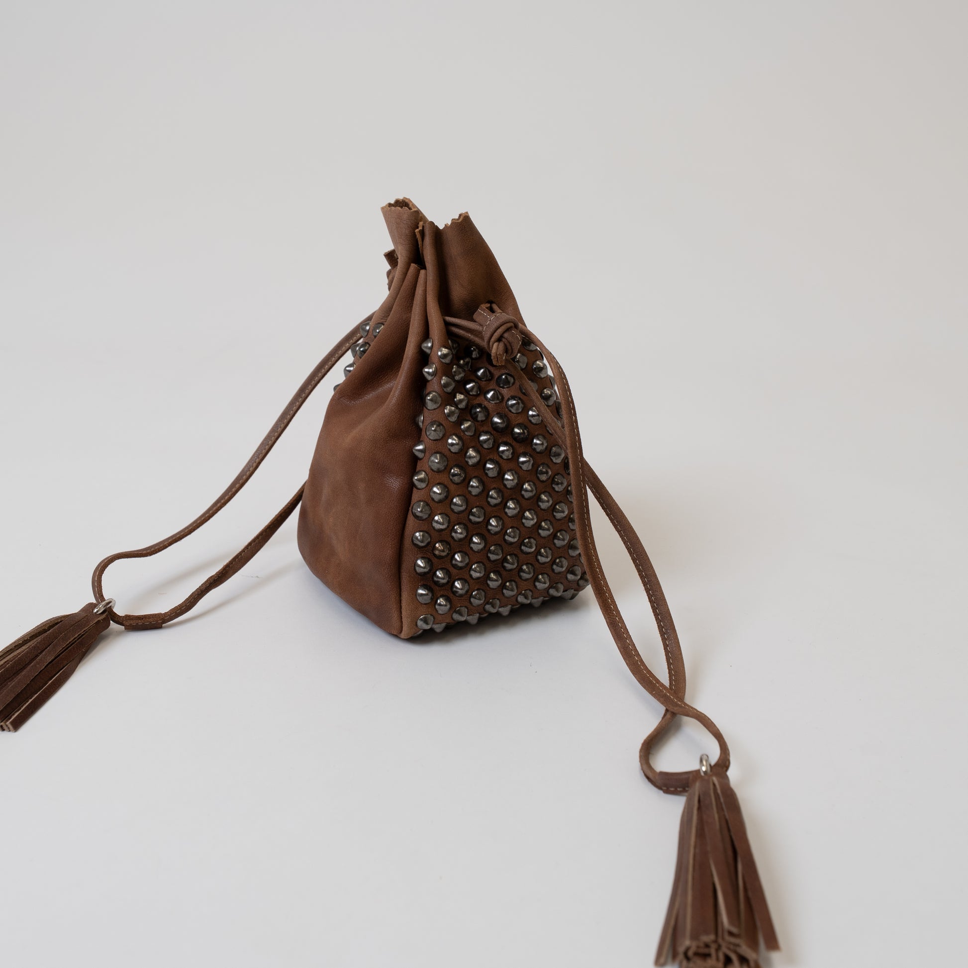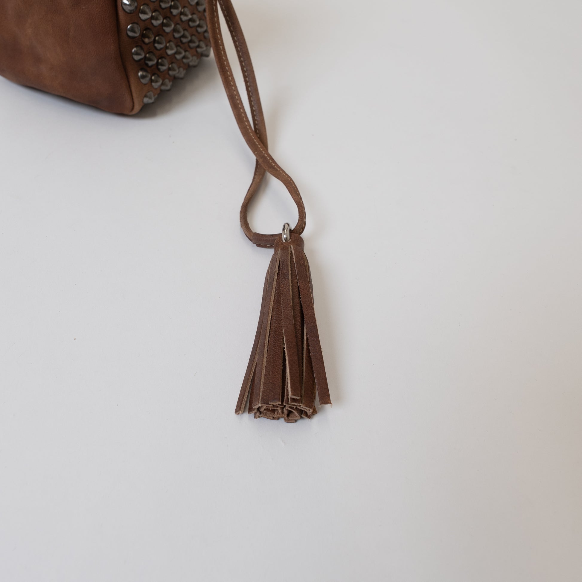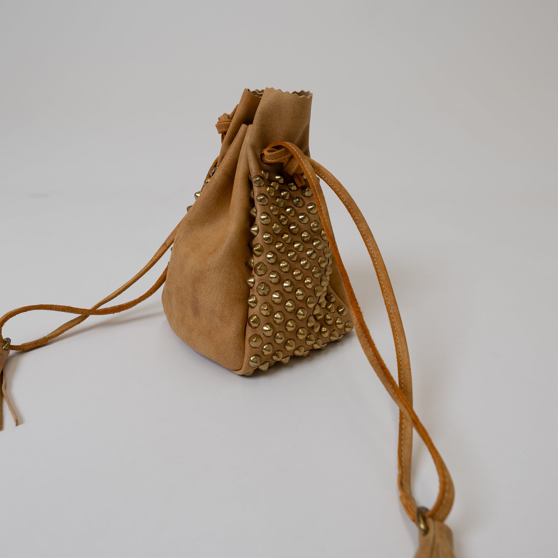 愛犬家におすすめの OLDMOUNTAIN 特徴のキャメルレザーを使用した スタッズ付き 収納ポーチ。 DOG LEASH AND COLLAR SET と一緒に 持ち歩けば、愛犬のお散歩時はもちろん ファッションアイテムとしても。 スタッズは ダークブラウンはシルバー、キャメルは真鍮に。 サイズ/1サイズ