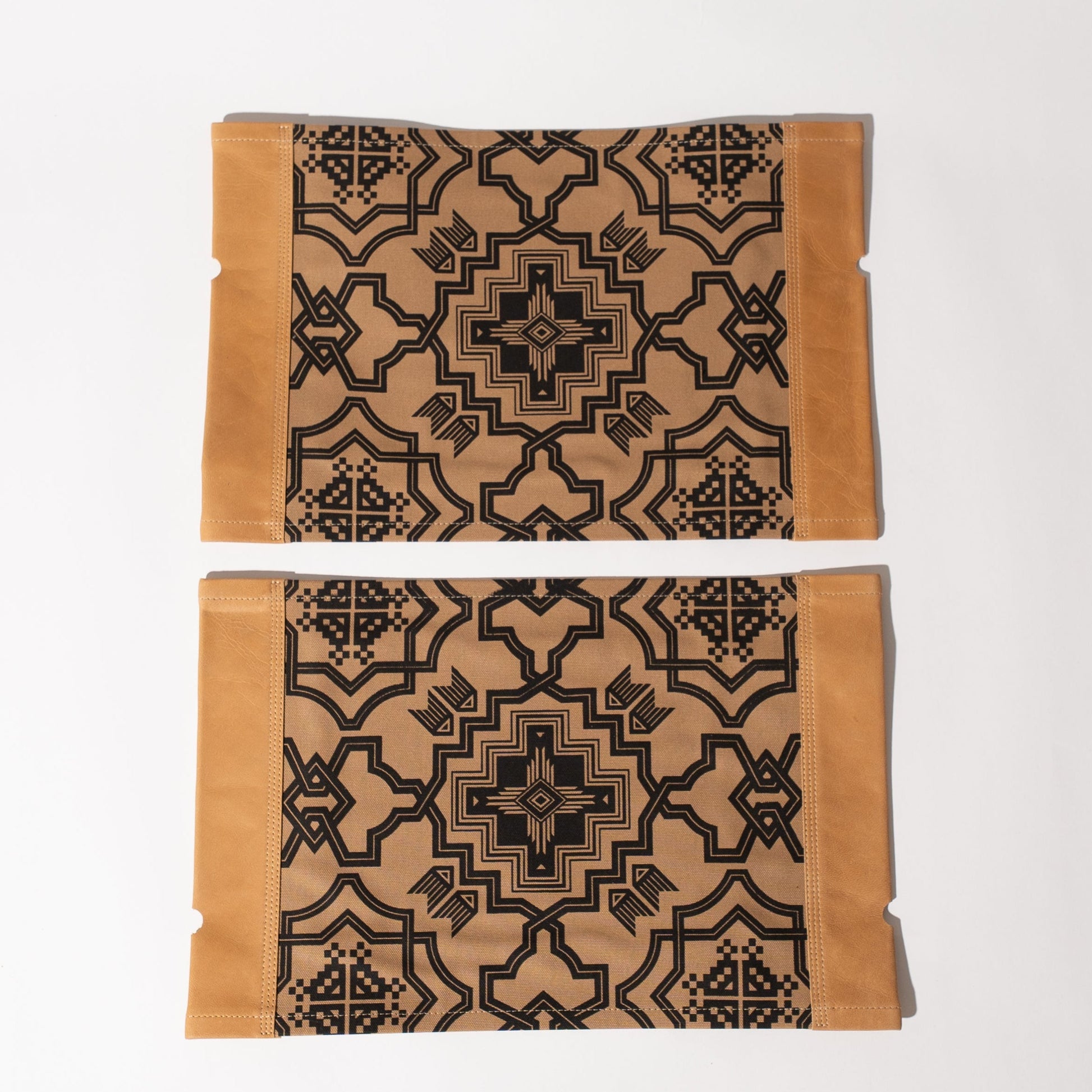 表地のワンウォッシュコットン生地に、オルテガ紋様と中東の伝統的なお祭りでラクダに入れる紋様からインスパイアされたブランドアイコンであるオリジナルデザインを施しています。 座面、背面ともに、強度のあるパラフィンコットンを裏地に使用して、座り沈みを一定で止めています。 サイドには高級サウジアラビアンキャメルレザーを使用し、エイジングを楽しむことが可能。 それぞれ特徴の異なる素材を二重構造にする事で、座り心地と耐久性を両立。 折り返しステッチ部分には、特殊材料で伸び止めを施してあるので、長く愛用して頂ける。