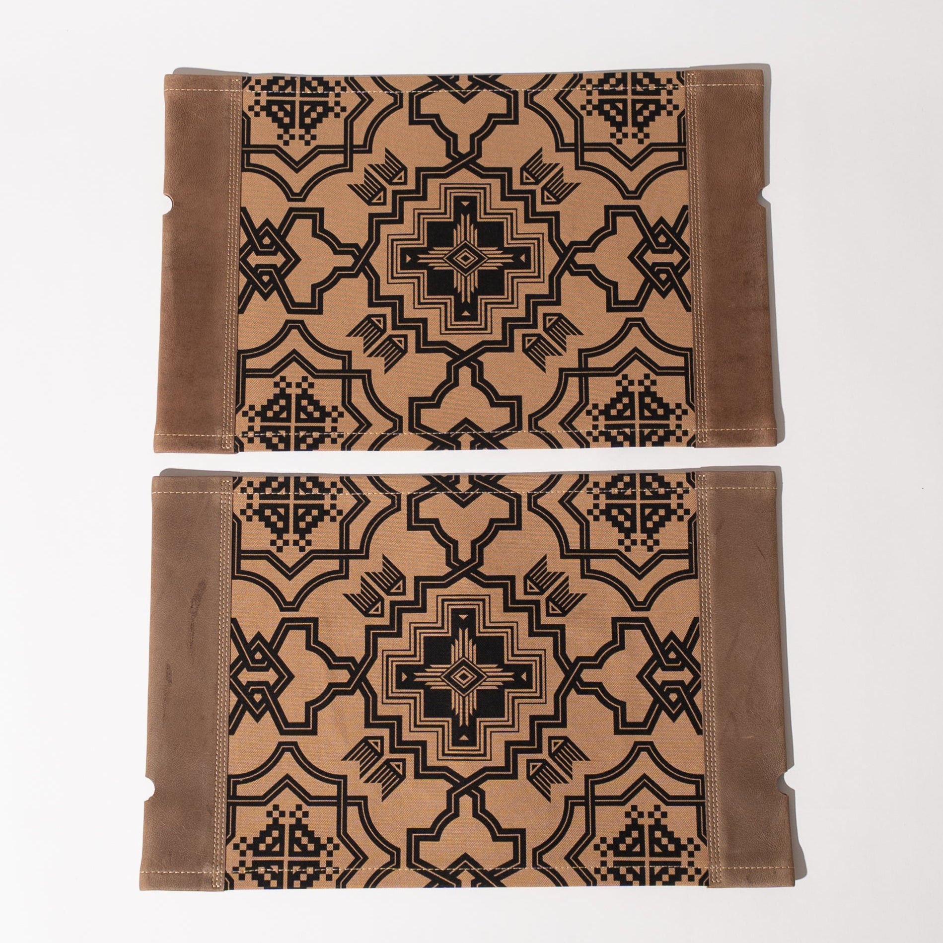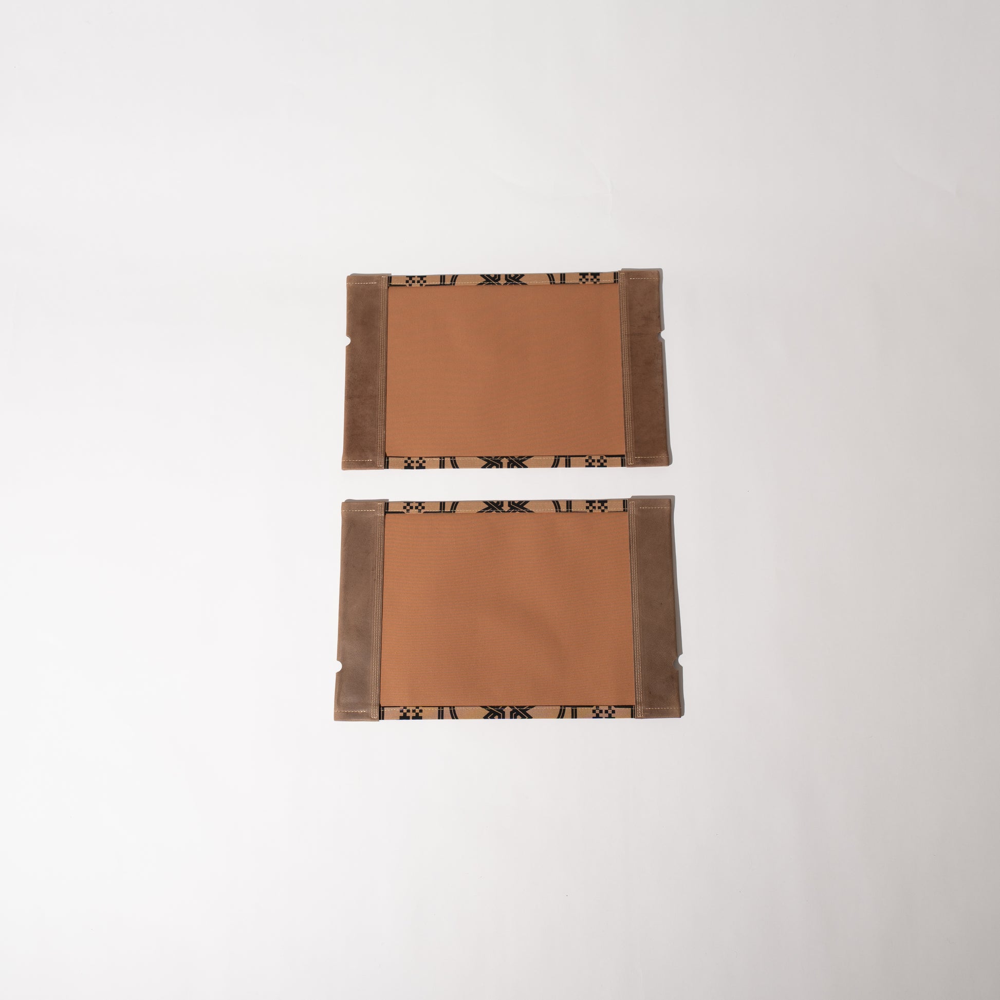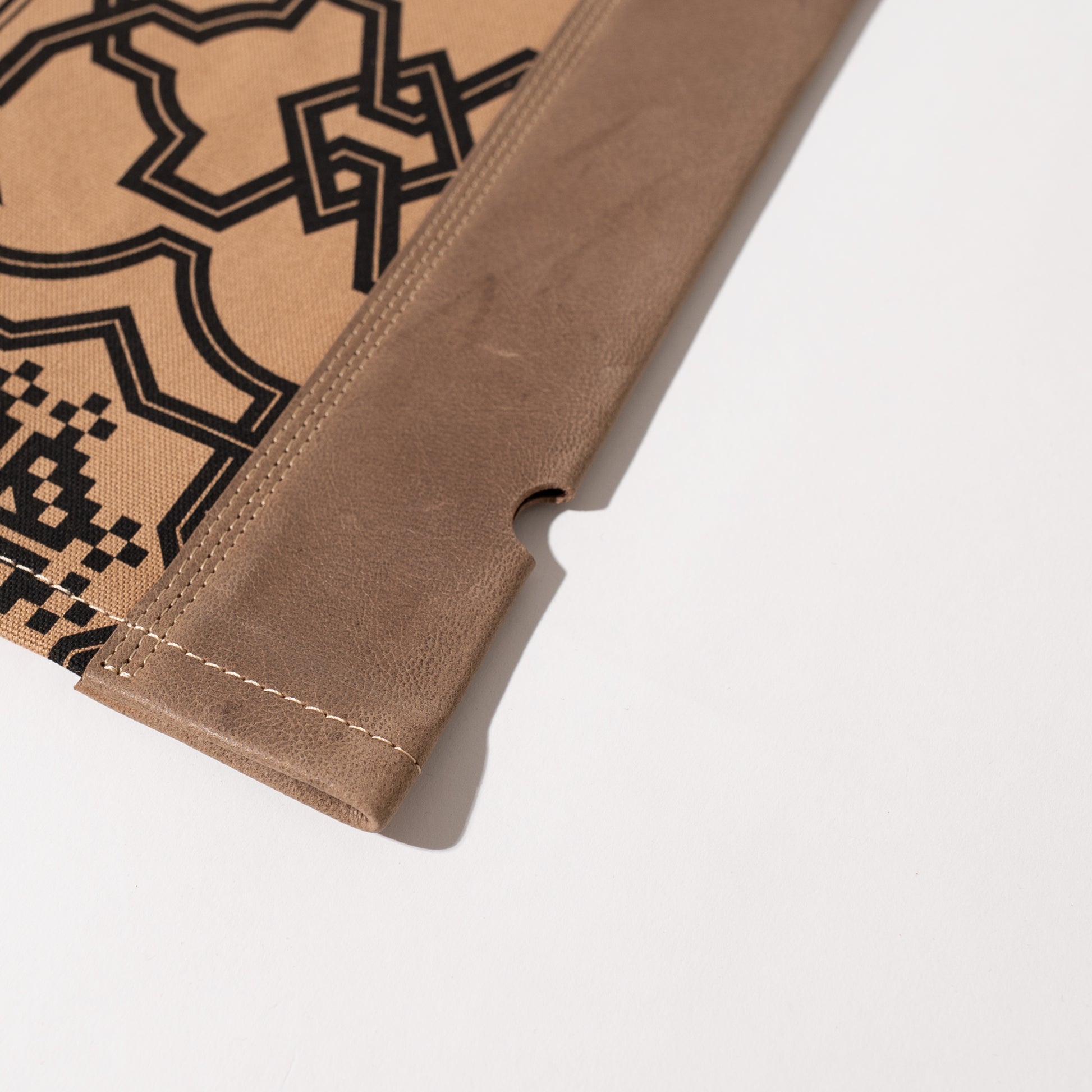表地のワンウォッシュコットン生地に、オルテガ紋様と中東の伝統的なお祭りでラクダに入れる紋様からインスパイアされたブランドアイコンであるオリジナルデザインを施しています。 座面、背面ともに、強度のあるパラフィンコットンを裏地に使用して、座り沈みを一定で止めています。 サイドには高級サウジアラビアンキャメルレザーを使用し、エイジングを楽しむことが可能。 それぞれ特徴の異なる素材を二重構造にする事で、座り心地と耐久性を両立。 折り返しステッチ部分には、特殊材料で伸び止めを施してあるので、長く愛用して頂ける。