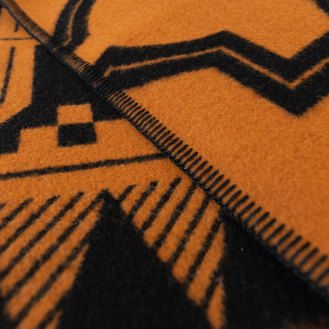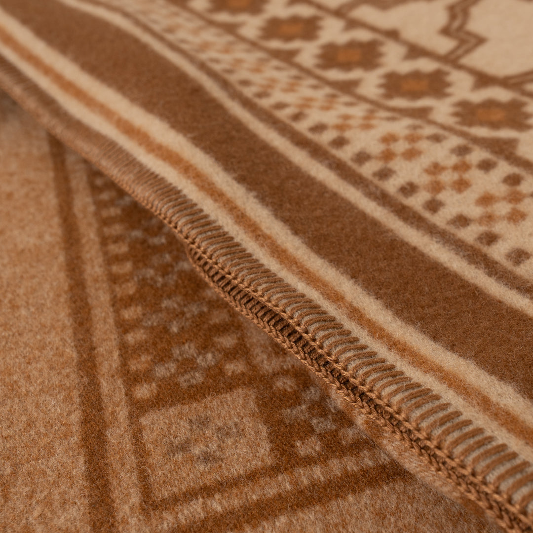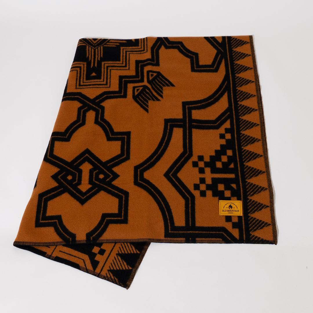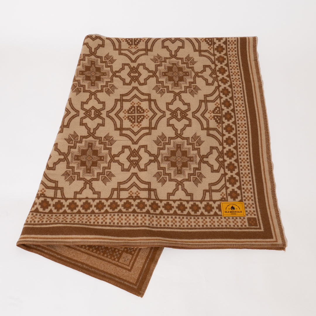 OLDMOUNTAINオリジナルパターンを落とし込んだ大判のウールブランケット。